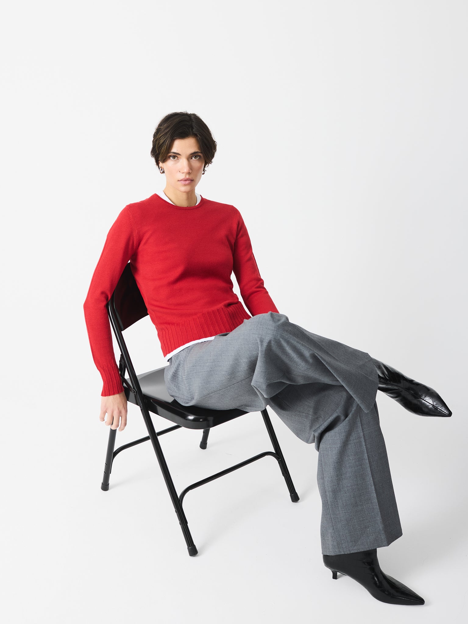 Jersey de canalé ancho cuello redondo y manga largaJersey de canalé ancho cuello redondo y manga larga
